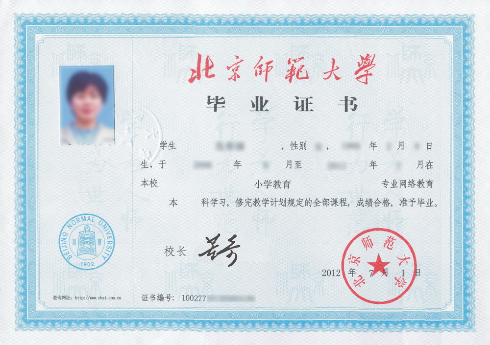 毕业证书样式:
