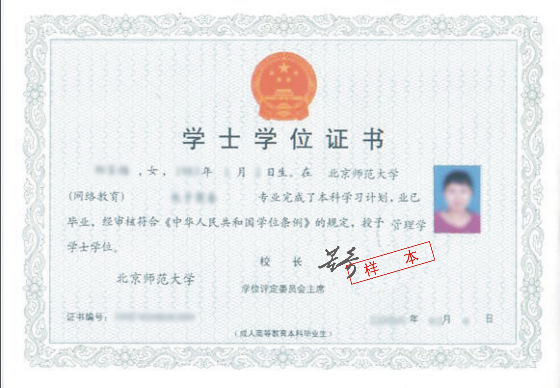 学位证书样式: